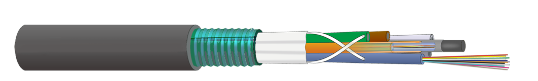 护套:钢-聚乙烯粘结护套,,,,MDPE,,黑色; 全截面阻水结构,,松套管填充特种油膏,,,确保良好的阻水防潮性能;